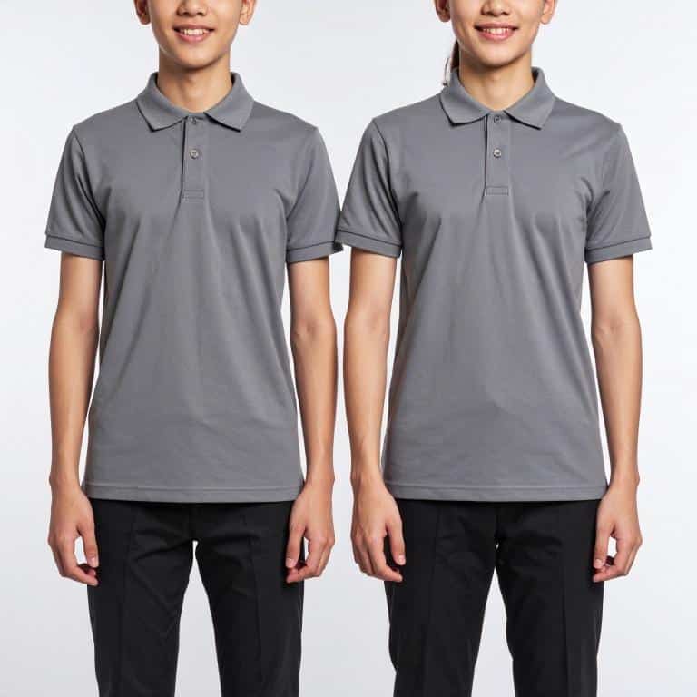 * Doğal ve sağlıklı kumaşlardan (pamuklu) polo yakalı, kısa veya uzun kollu gri renk tişört (YAZLIK)
